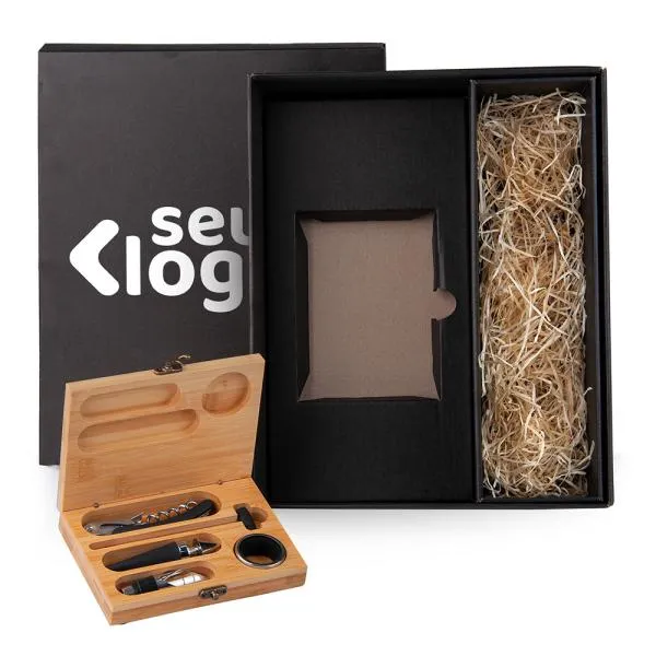 Acessórios Para Vinho Com Estojo Em Bambu E Espaço Para Garrafa 6 Pçs – Novos Negócios