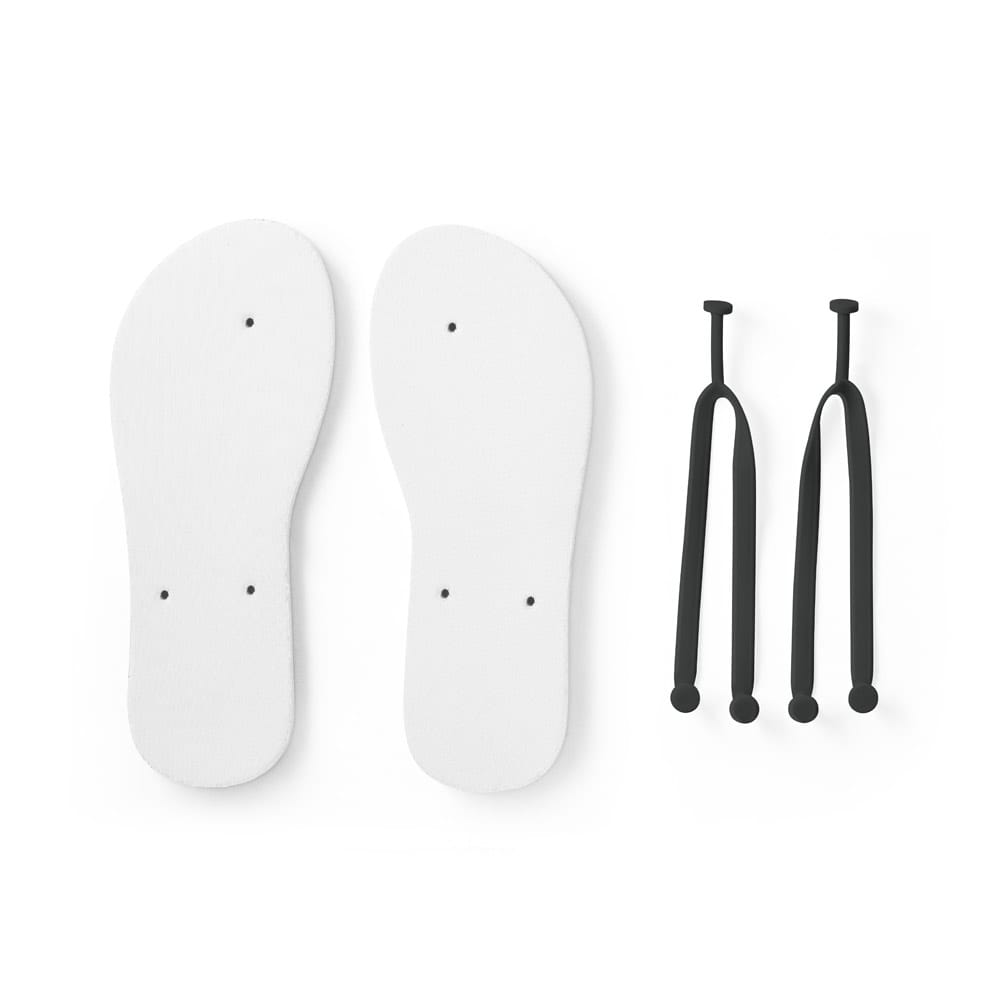 Chinelos confortáveis com sola em EVA e tira em PVC. A sola é totalmente personalizável em sublimação. Tamanhos disponíveis: G/GG (40 ao 43). Fornecidos num saco (montados em caso de personalização e desmontados em caso de não personalização)