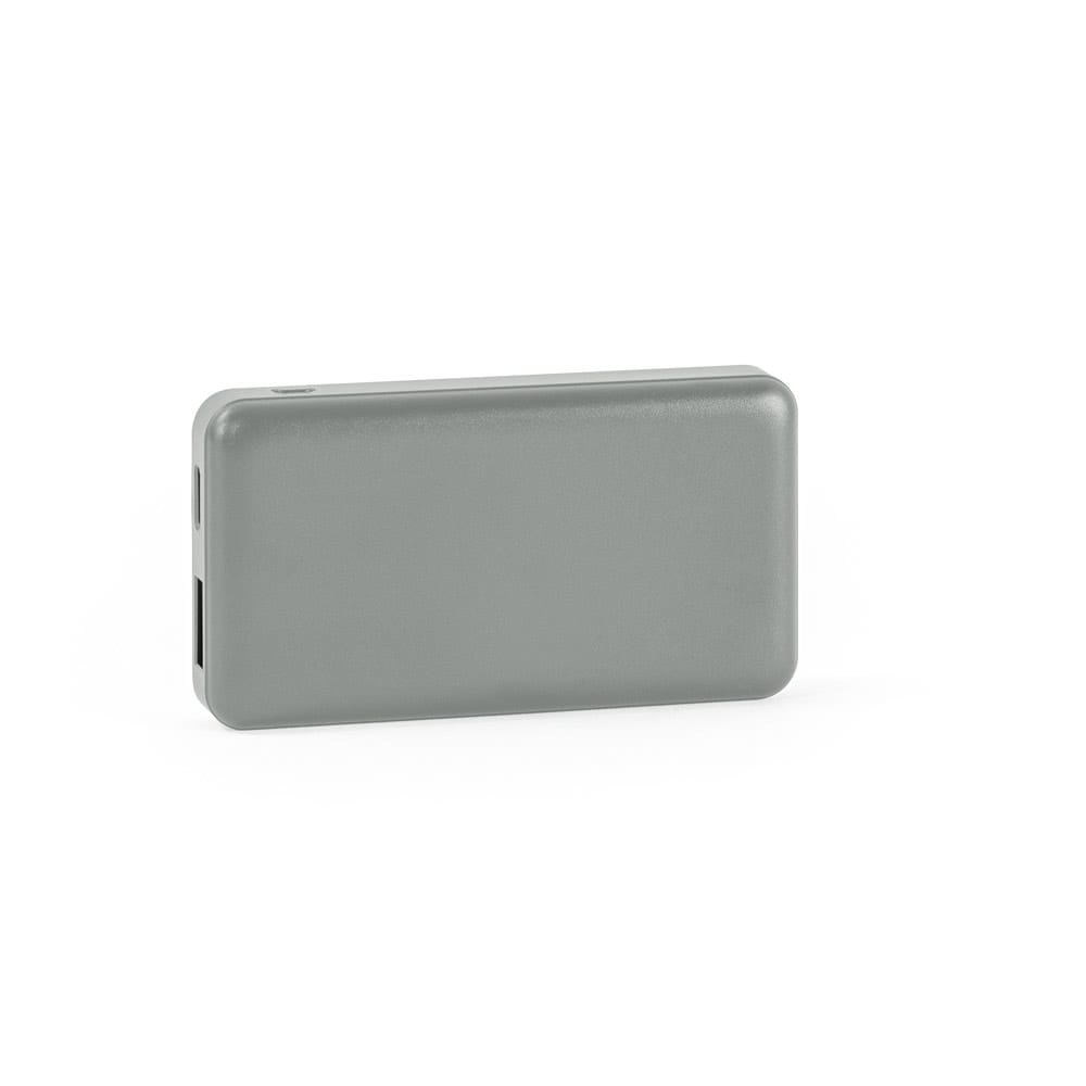 Bateria portátil em ABS 100% reciclado. Leve e com dimensões extremamente reduzidas é a solução perfeita para levar com você a qualquer lugar e garantir a bateria necessária em situações de emergência.Com capacidade de 4.000 mAh, indicador de nível de carga, uma porta de entrada USB-C e uma porta de saída USB-A. Incluso um cabo de carregamento USB-C. Fornecida em caixa presente de papel kraft reciclado