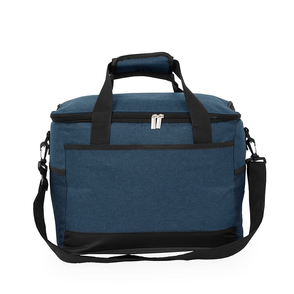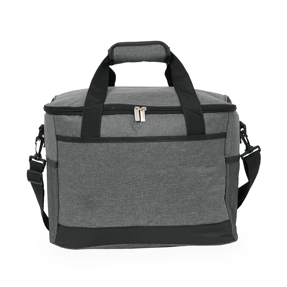 Bolsa térmica confeccionada em Oxford 600D impermeável com camada interna acolchoada, fechamento em zíper e capacidade máxima de 25 litros. Possui revestimento térmico em PEVA antivazamento, além de duas alças fixas em nylon com suporte de juntura e três bolsos externos, incluindo dois em malha. Acompanha alça transversal ajustável.
