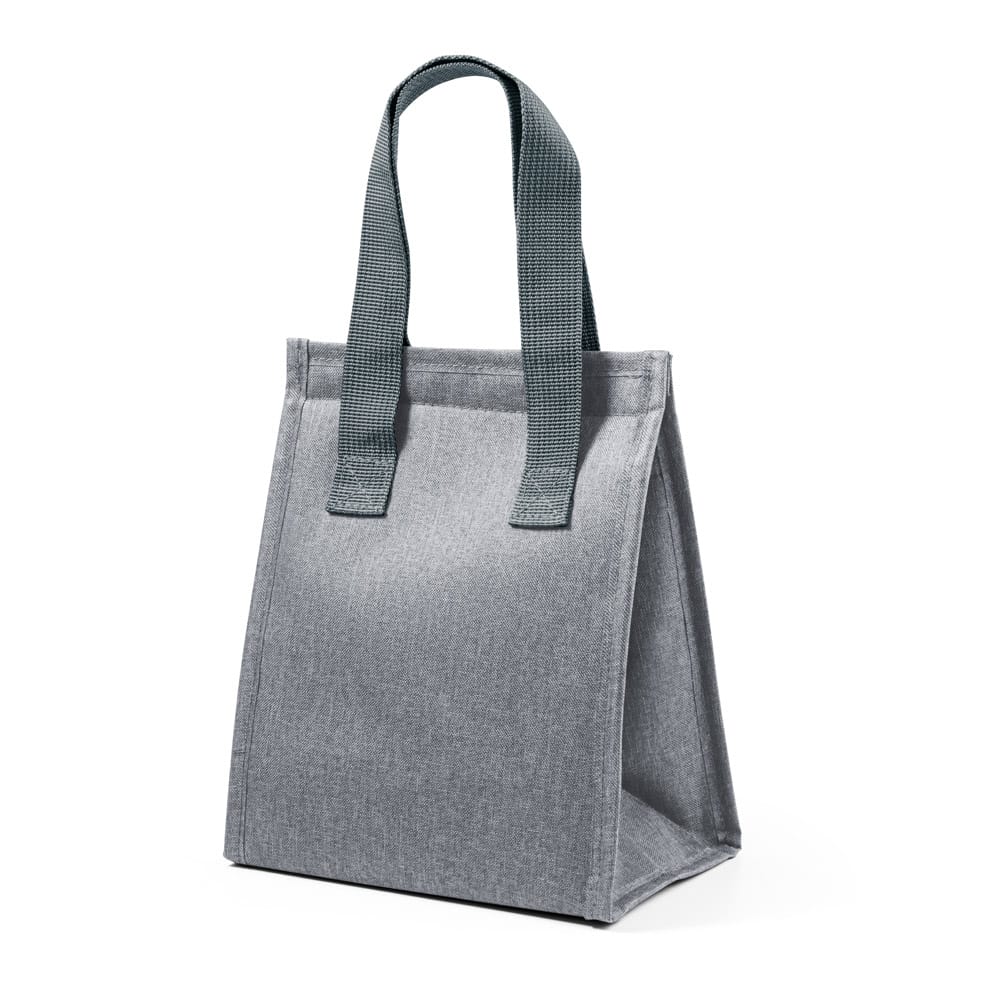 Bolsa térmica em Poliéster de alta densidade com pegas em webbing. Contém 1 compartimento principal com fecho aderente. Capacidade até 6L
