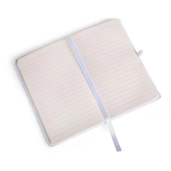 Caderno para anotações branco com capa dura.