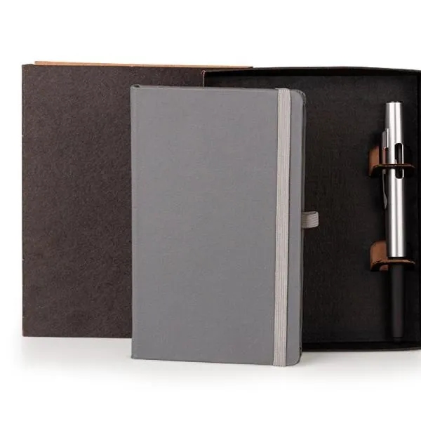 Uma caderneta com caneta combinada em um único conjunto resolve uma necessidade prática do dia a dia corporativo: ter sempre à mão um espaço para registrar ideias, reuniões e anotações importantes. Indicada para empresas que buscam brindes funcionais para colaboradores, clientes ou parceiros, especialmente em contextos de uso contínuo no trabalho. Com gravação digital na capa e na caneta, e apresentação em caixa preta, o conjunto chega pronto para representar sua marca com cuidado.