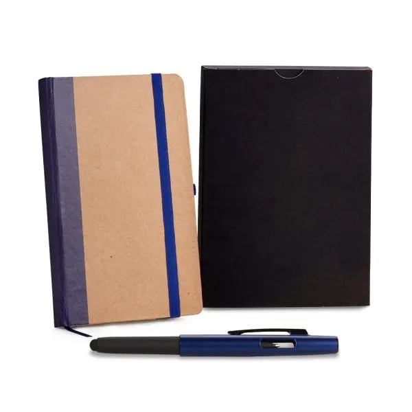 - Caneta: Corpo em alumínio azul, acompanha o conjunto