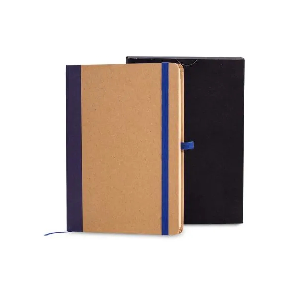 Caderno para anotações com capa dura nas cores Azul/Bege.