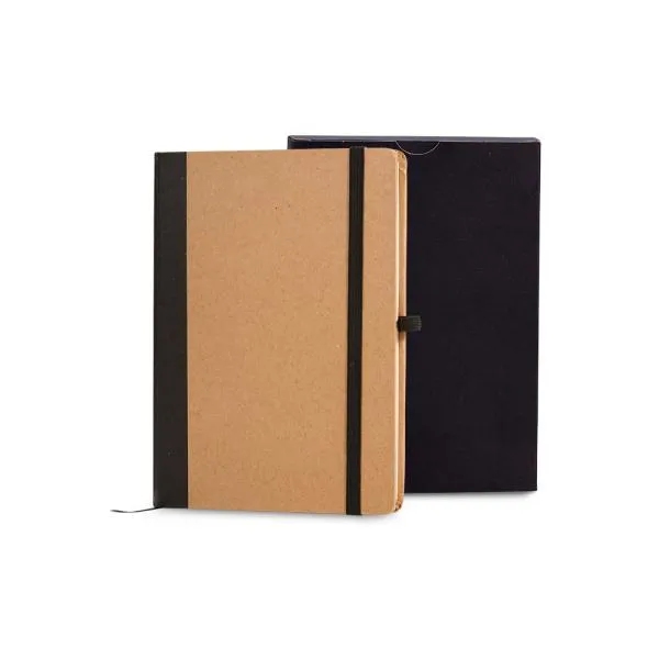 Caderno para anotações com capa dura nas cores Preto/Bege.