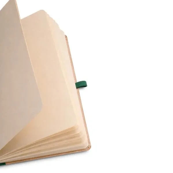 Caderno para anotações com capa dura nas cores Verde/Bege.
