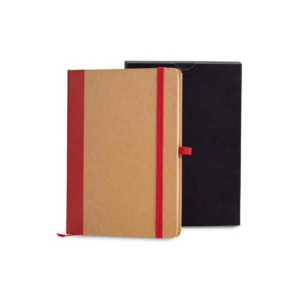 Caderno para anotações com capa dura nas cores Vermelho/Bege.
