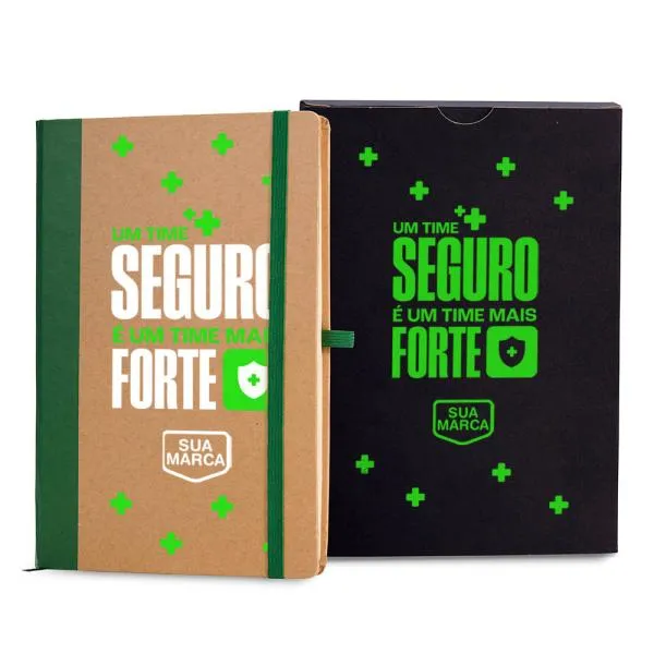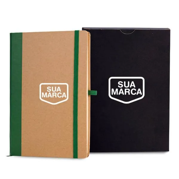 - Utilidade no cotidiano: Folhas não pautadas, porta caneta e elástico de fechamento fazem desta caderneta um item que as pessoas realmente usam, mantendo sua marca presente de forma natural