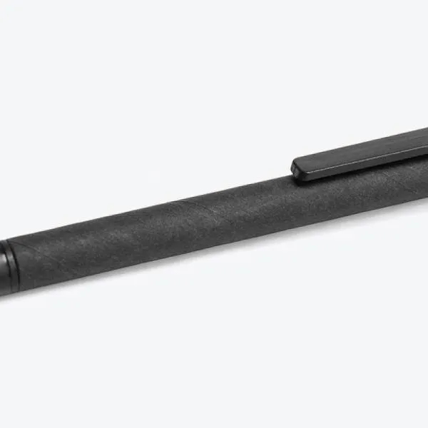 - Caneta inclusa: Capa em papelão reciclado, ponta touch, carga preta, acionada por clique