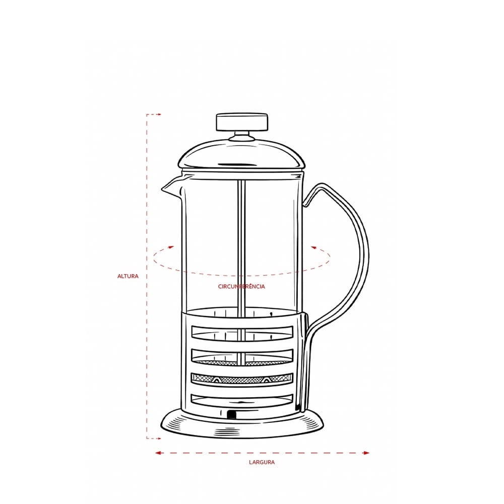 - Tampa: Com êmbolo e tela em inox para filtragem do café