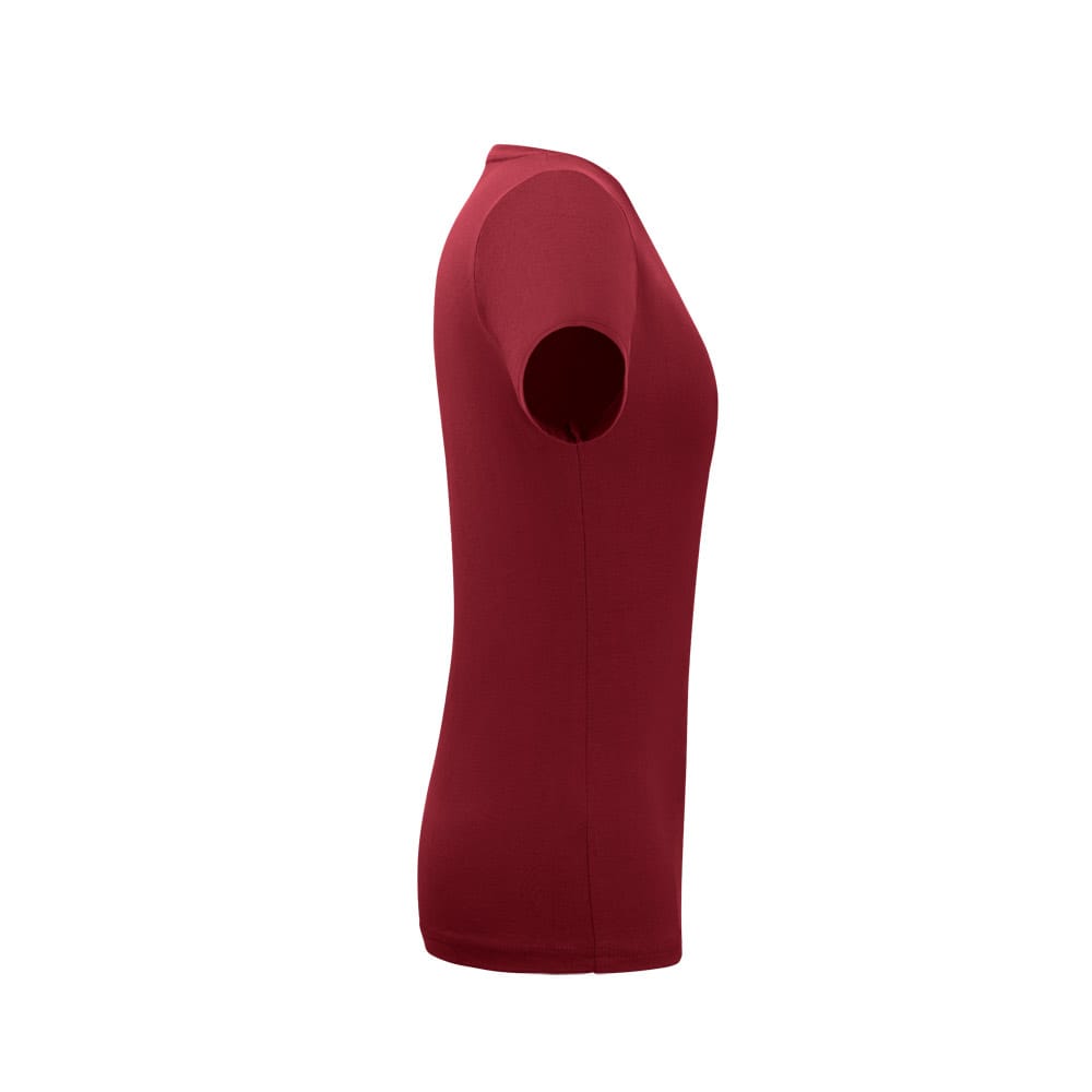 Camiseta feminina de corte cinturado em malha 100% algodão (165 g/m2) com fio 30/1 misto. Com gola em ribana 1×1 com fita de reforço e com costura dupla nas mangas, barra de fundo e laterais. Produto contém certificação ABVTEX. Fabricado no Brasil