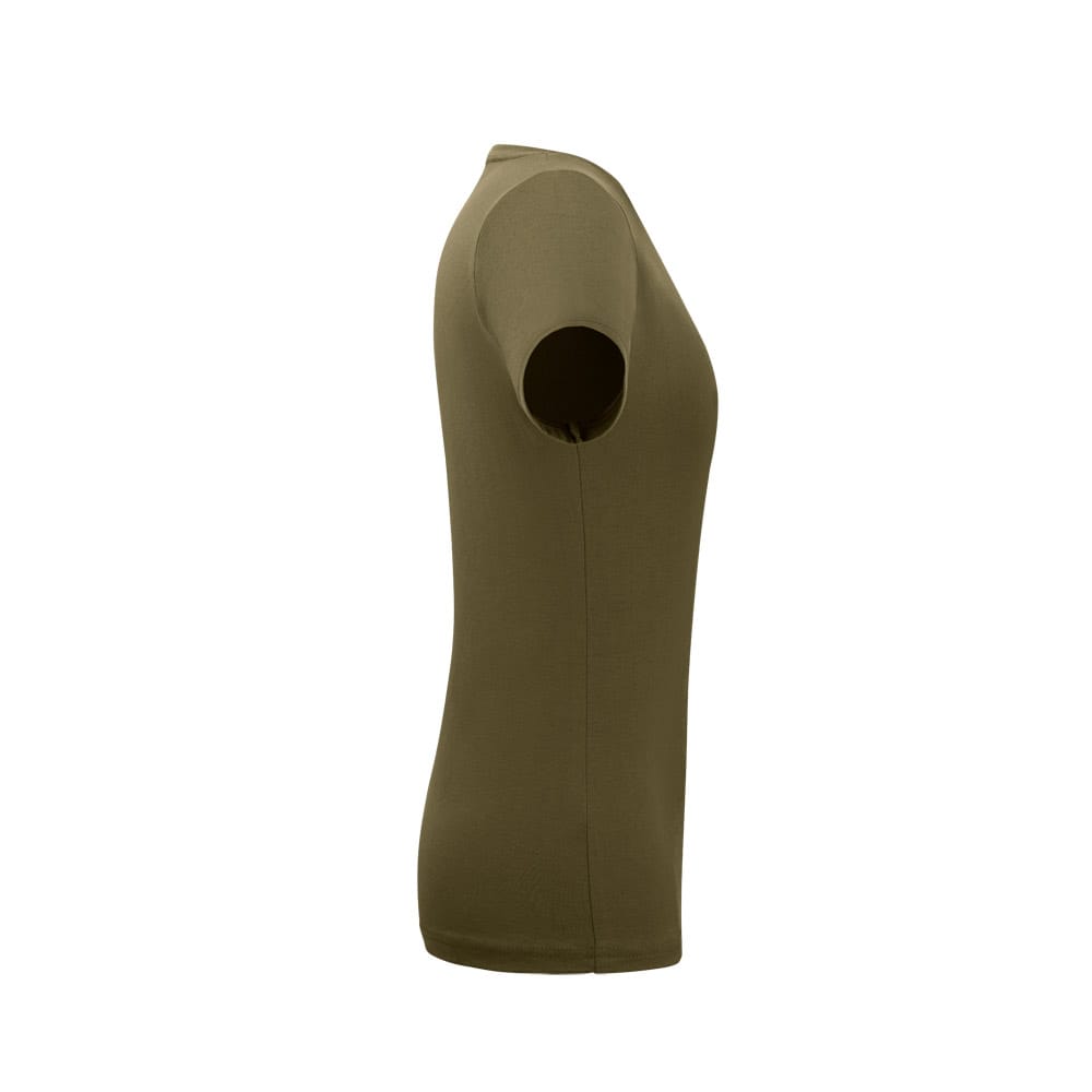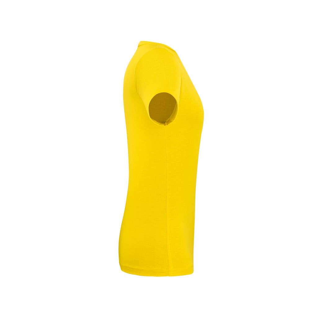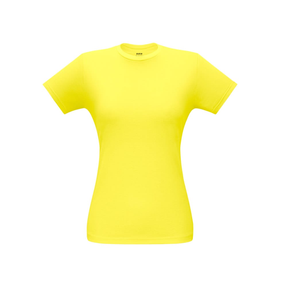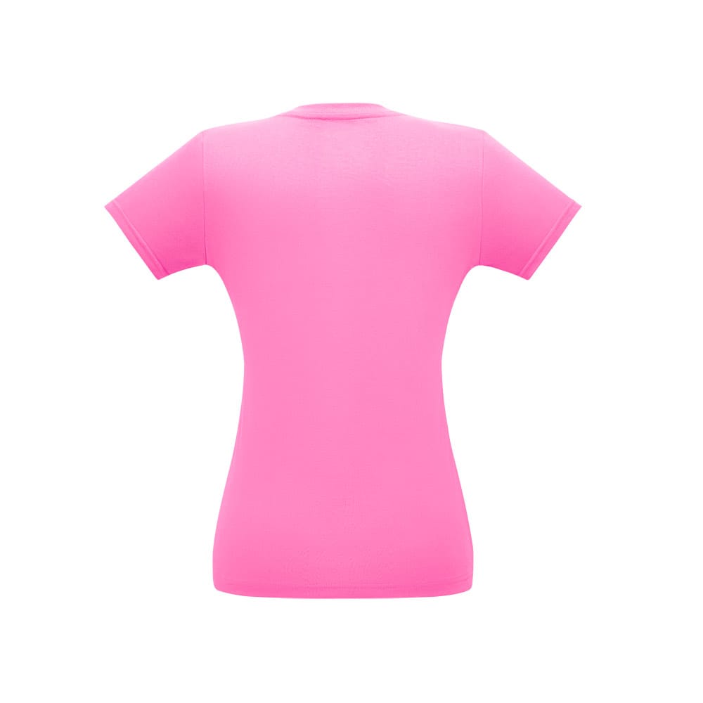 Camiseta feminina de corte cinturado em malha 100% algodão (135 g/m2) com fio 30/1 misto. Com gola em ribana 1×1 com fita de reforço e com costura dupla nas mangas, barra de fundo e laterais. Produto contém certificação ABVTEX. Fabricado no Brasil