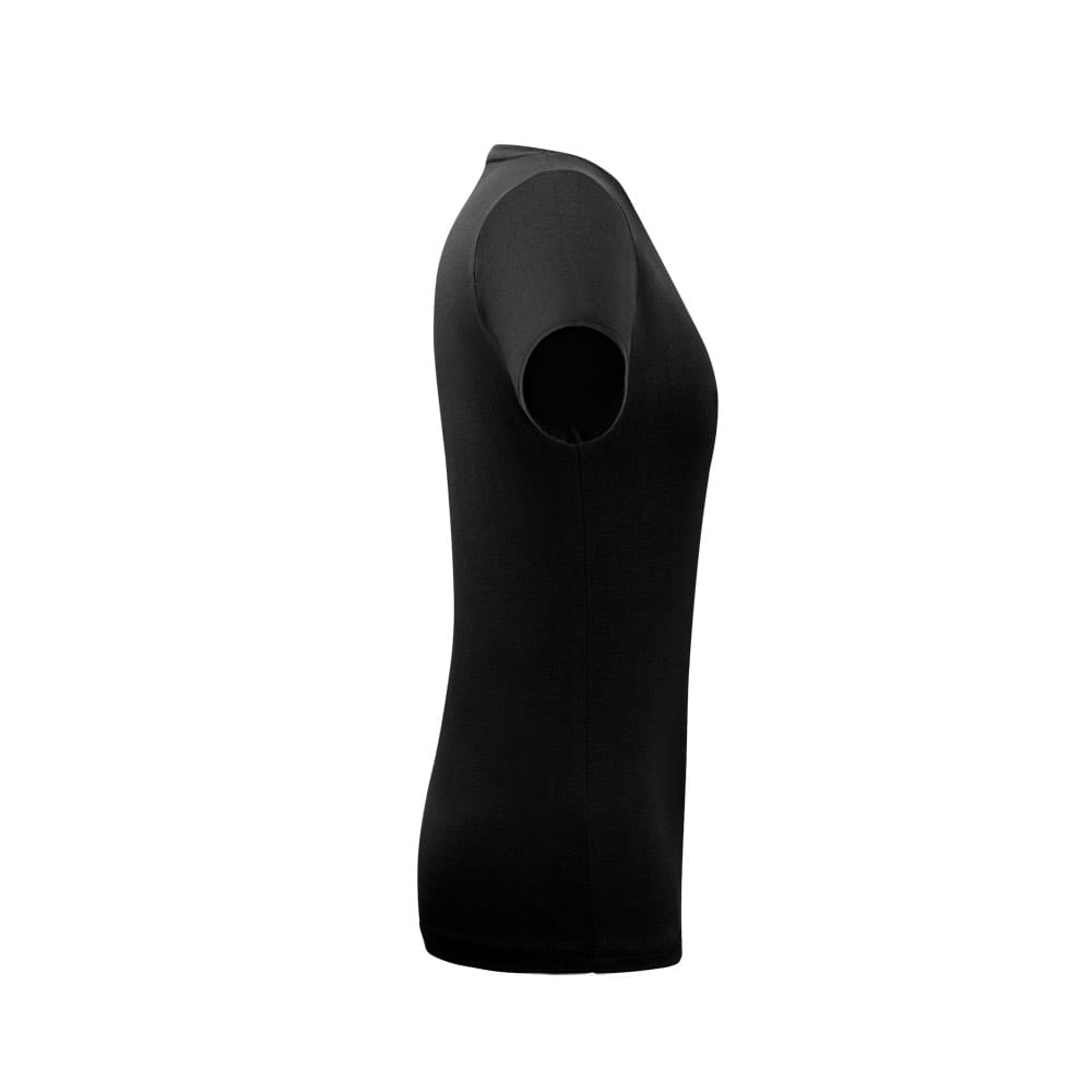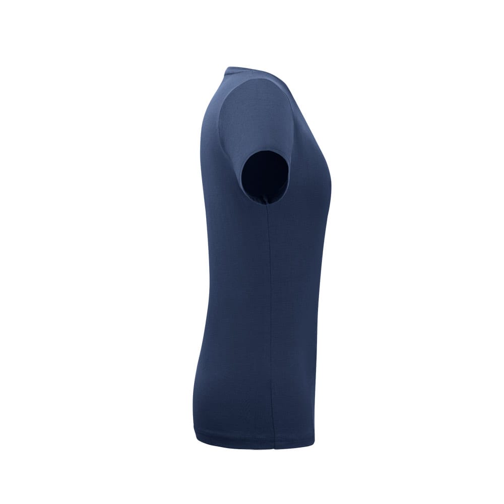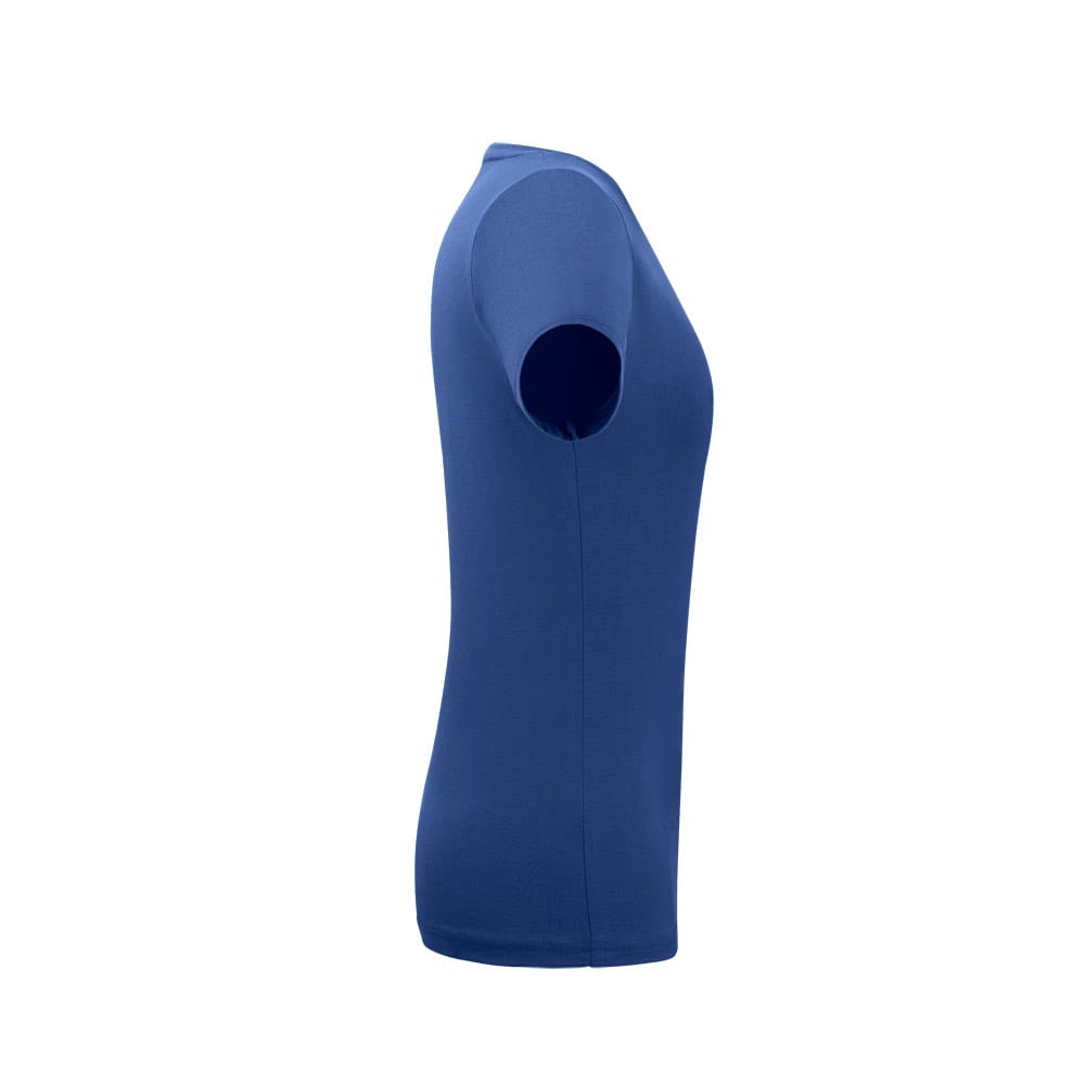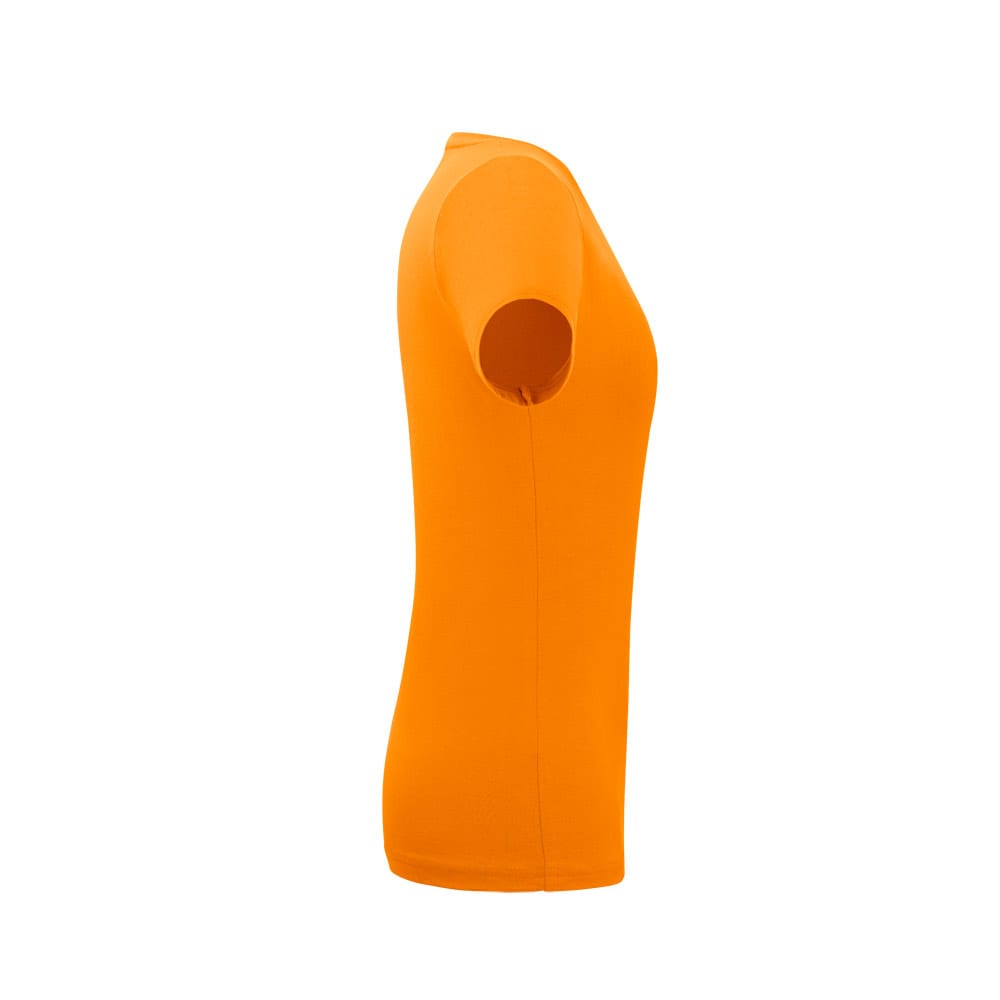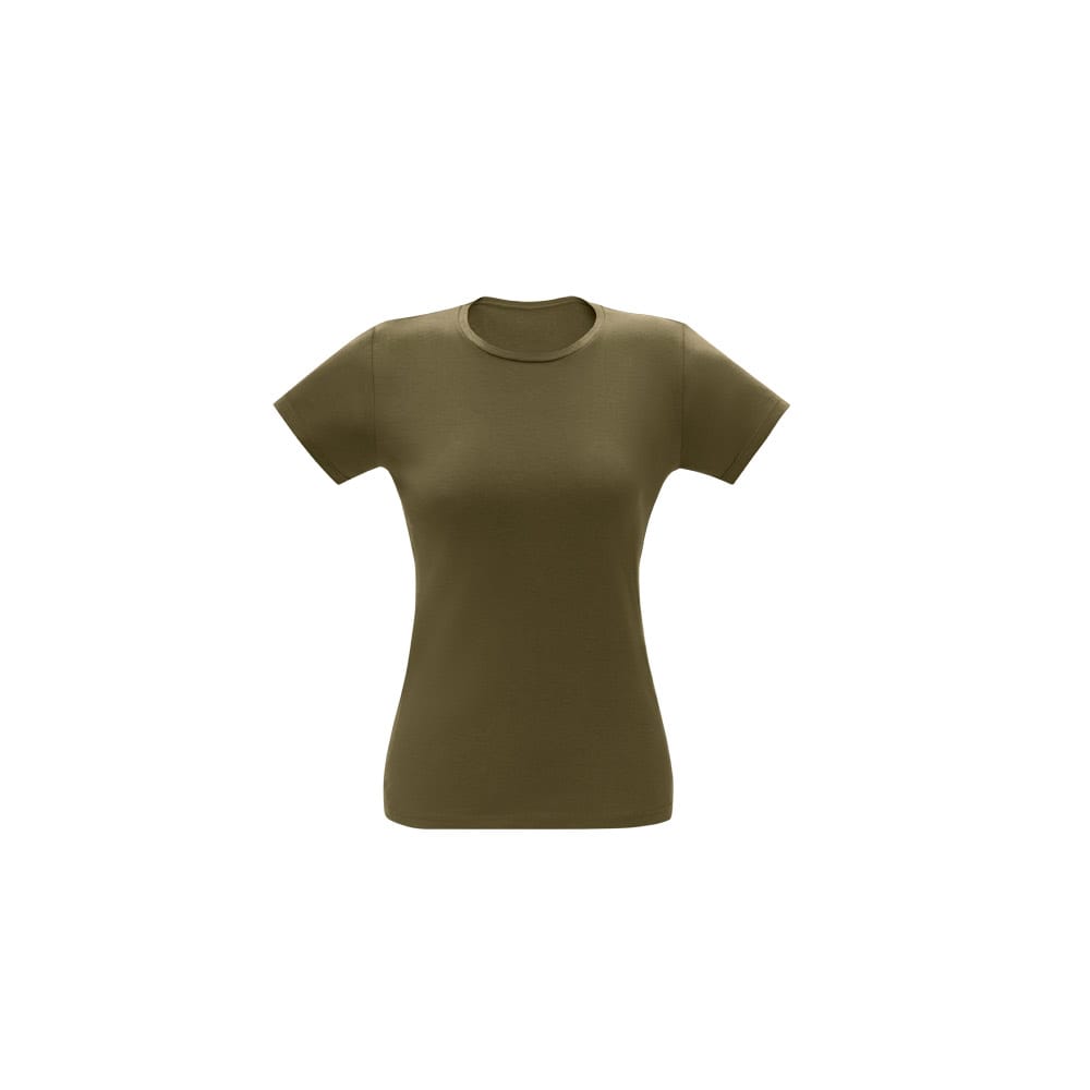 Camiseta feminina de corte cinturado em malha 100% polyester fiado (135 g/m2) com fio 30/1 polyester. Com gola em ribana 1×1 com fita de reforço e com costura dupla nas mangas, barra de fundo e laterais. Produto contém certificação ABVTEX. Fabricado no Brasil