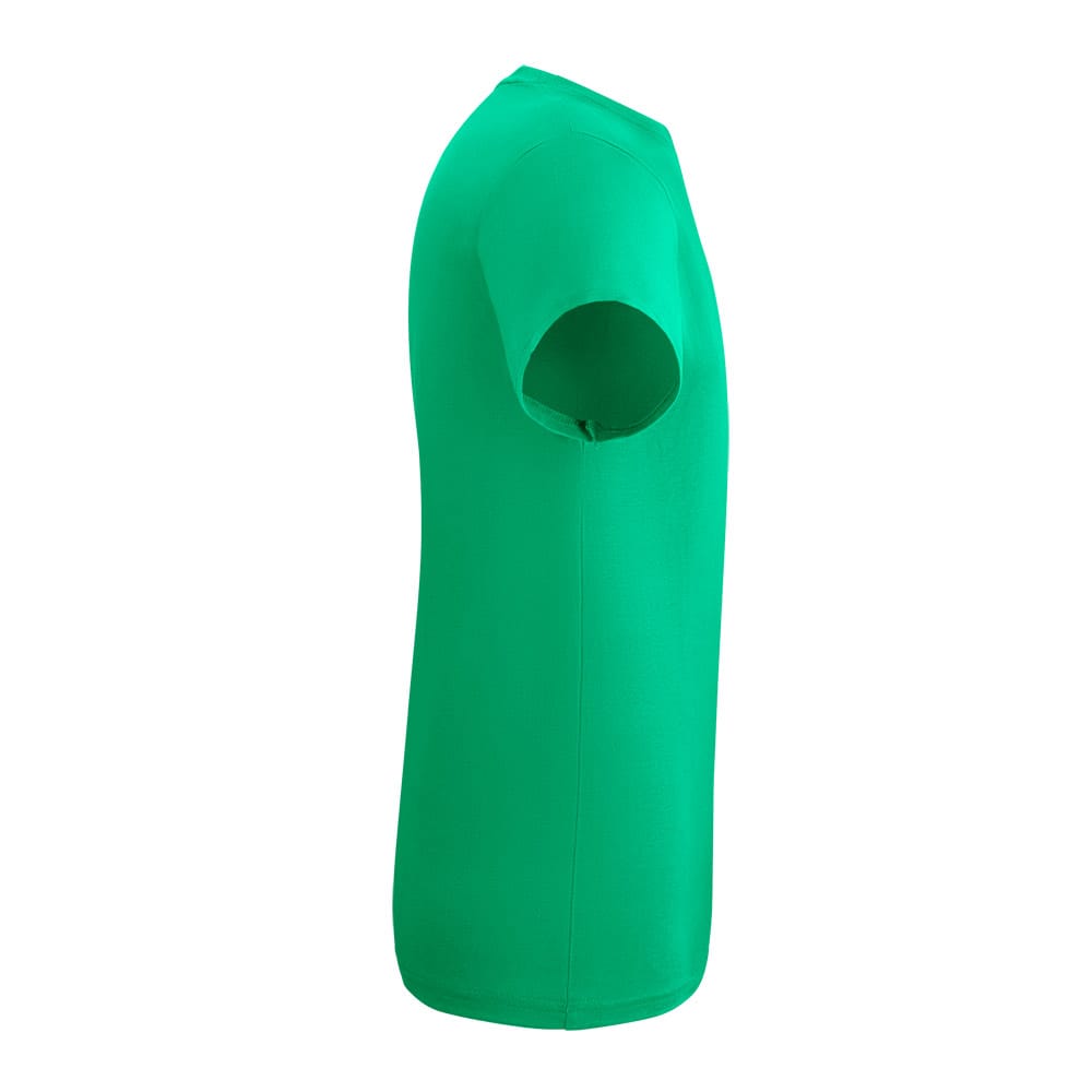 Camiseta unissex de corte regular em malha 100% algodão (135 g/m2) com fio 30/1 misto. Com gola em ribana 1,5×1,5 com fita de reforço e com costura dupla nas mangas, barra de fundo e laterais. Produto contém certificação ABVTEX. Fabricado no Brasil