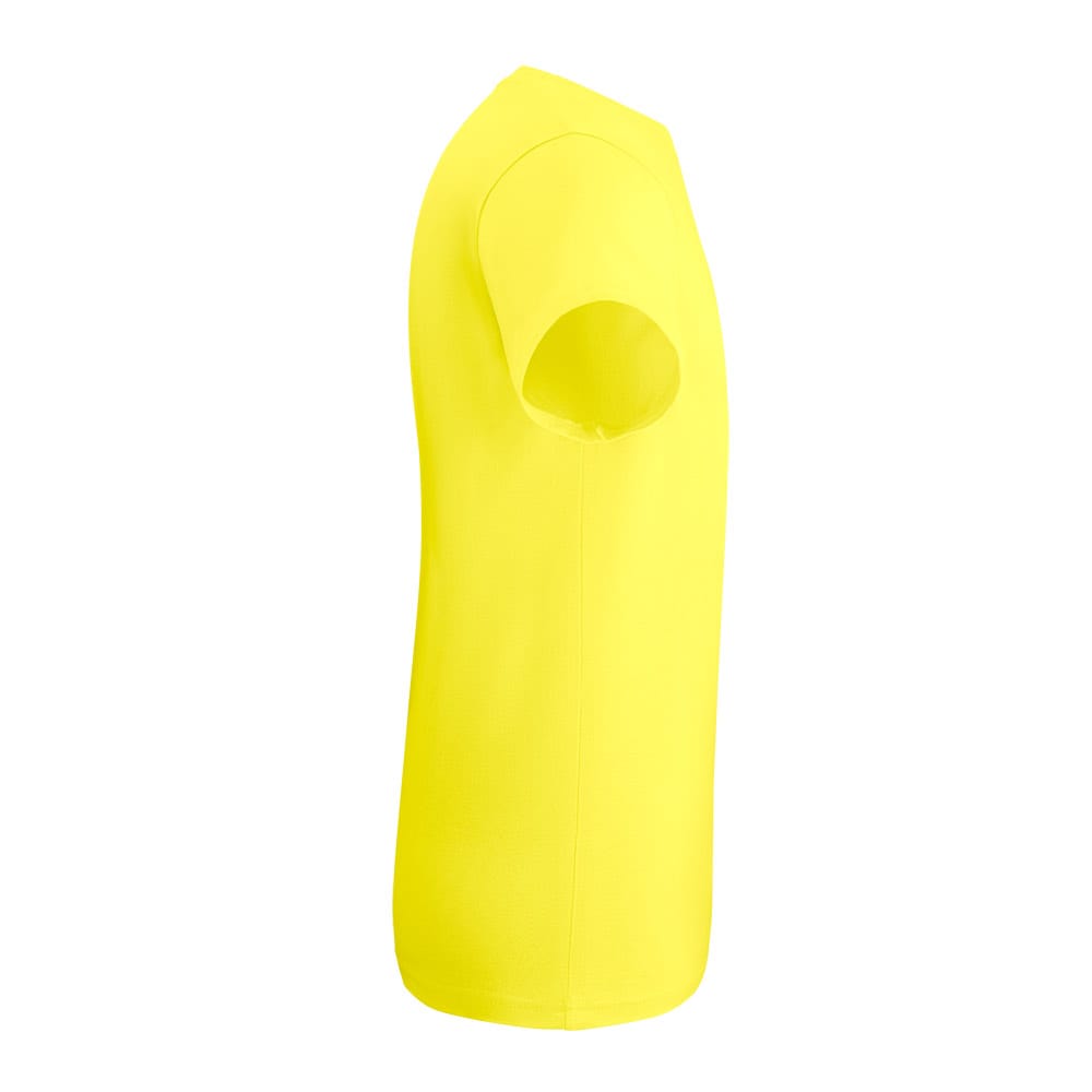 Camiseta unissex de corte regular em malha 100% polyester fiado (135 g/m2) com fio 30/1 polyester. Com gola em ribana 1,5×1,5 com fita de reforço e com costura dupla nas mangas, barra de fundo e laterais. Produto contém certificação ABVTEX. Fabricado no Brasil