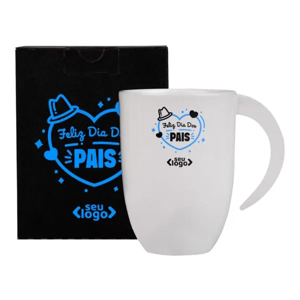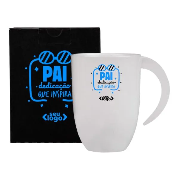 - Personalização em dois pontos: A gravação tanto na caneca quanto na embalagem reforça a identidade visual da sua empresa em toda a experiência do presenteado