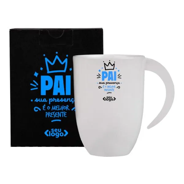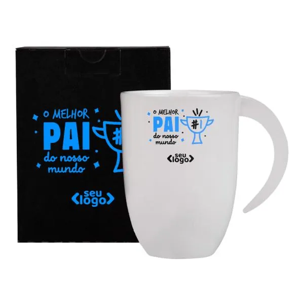 - Presença diária da marca: Usada no ambiente de trabalho, em casa ou em qualquer rotina, a caneca mantém sua logomarca visível de forma natural e sem esforço