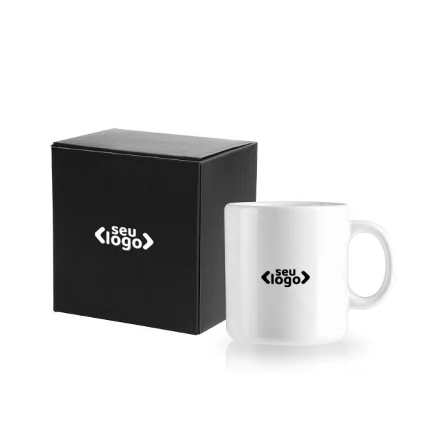 Gravação: Uma gravação em Silk Screen na caneca e na embalagem.