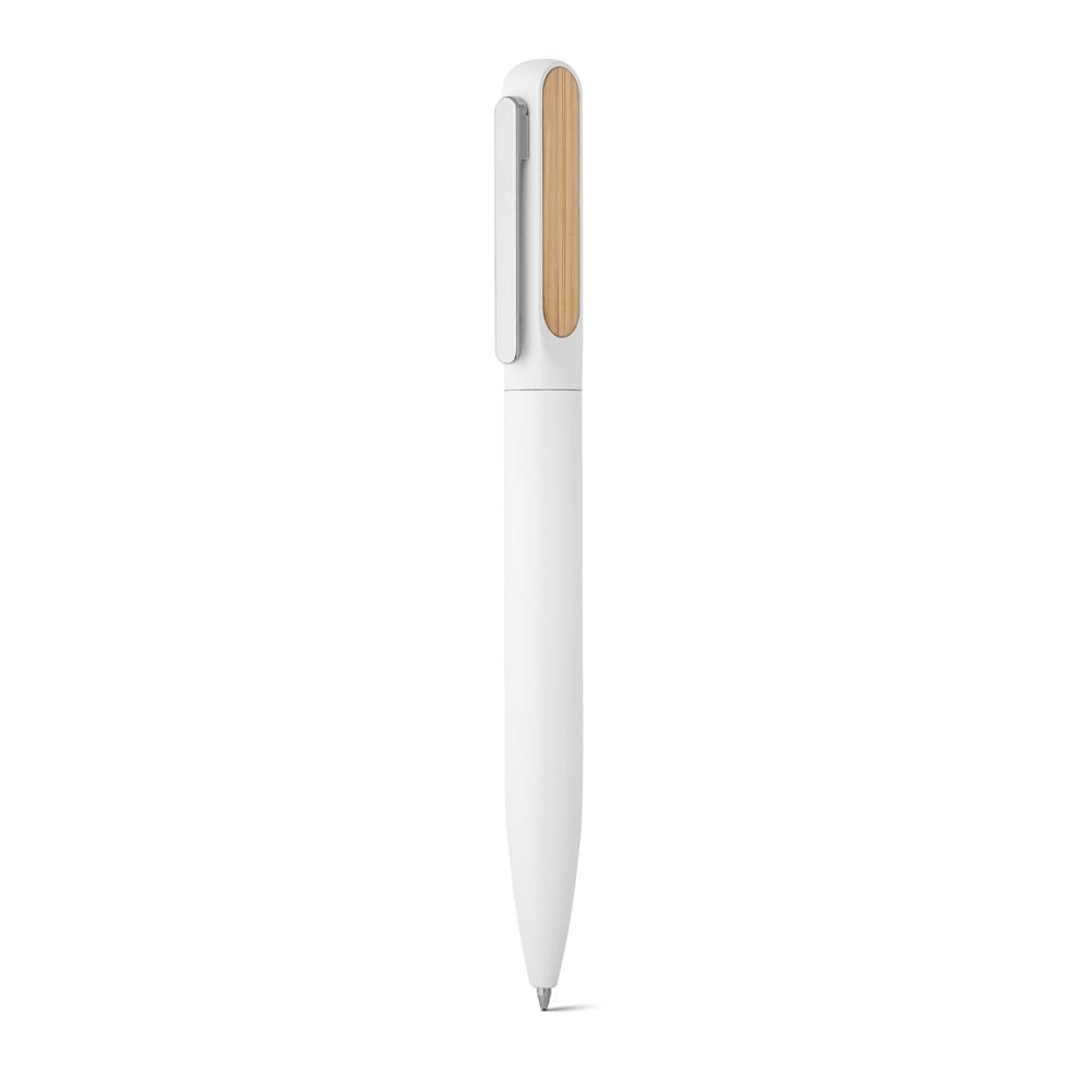 Caneta em alumínio 94% reciclado com detalhe em bambu no clipe. Escrita em azul até 1,5 km. Fornecida em bolsa de oferta. A cor e o resultado da impressão nos materiais naturais pode variar entre produtos
