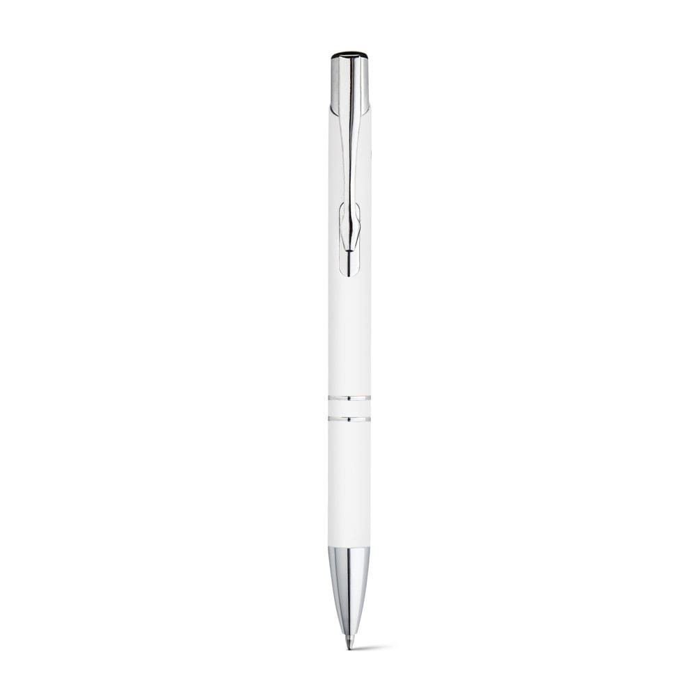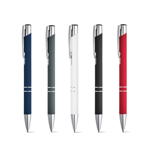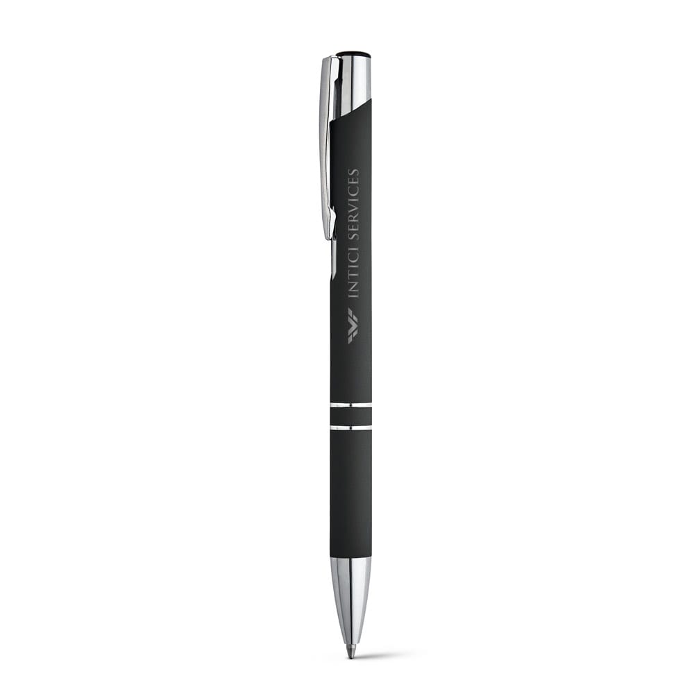 Caneta em Alumínio com Acabamento Emborrachado e Escrita em Preto