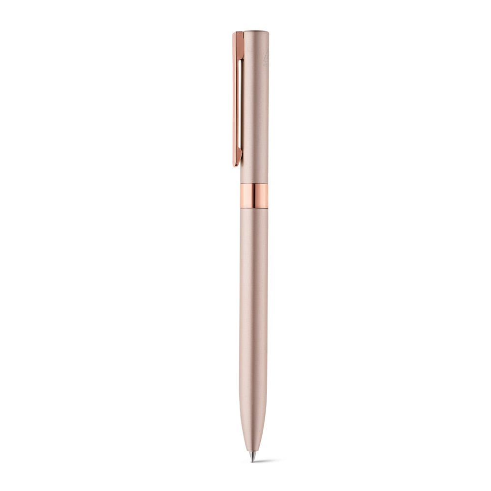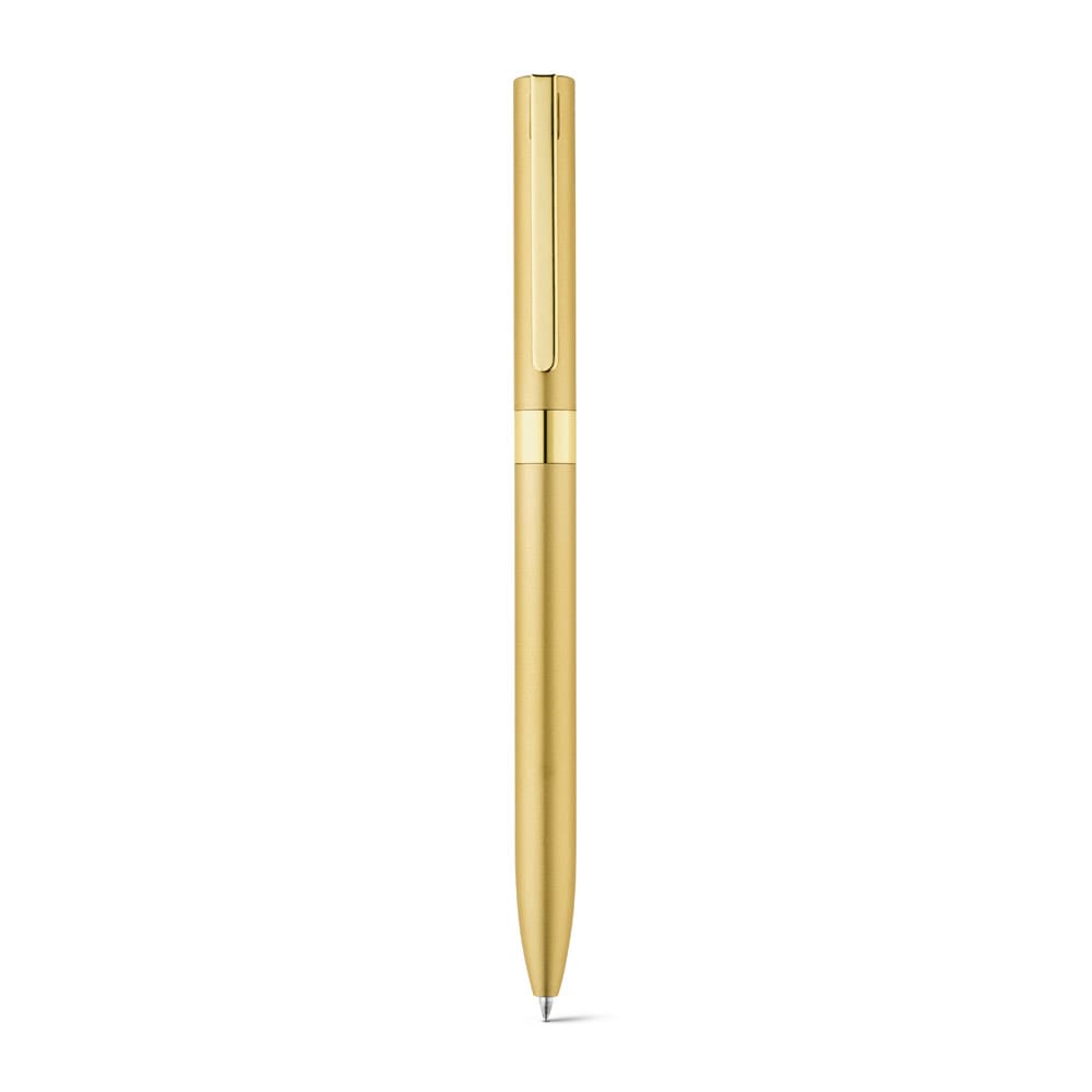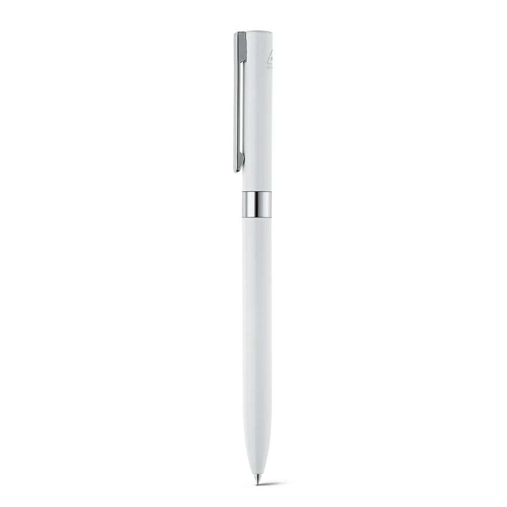 Caneta em alumínio 100% reciclado, com clipe em metal. A Caneta tem mecanismo twist e escrita em preto até 1,5 km. Disponível em elegantes cores