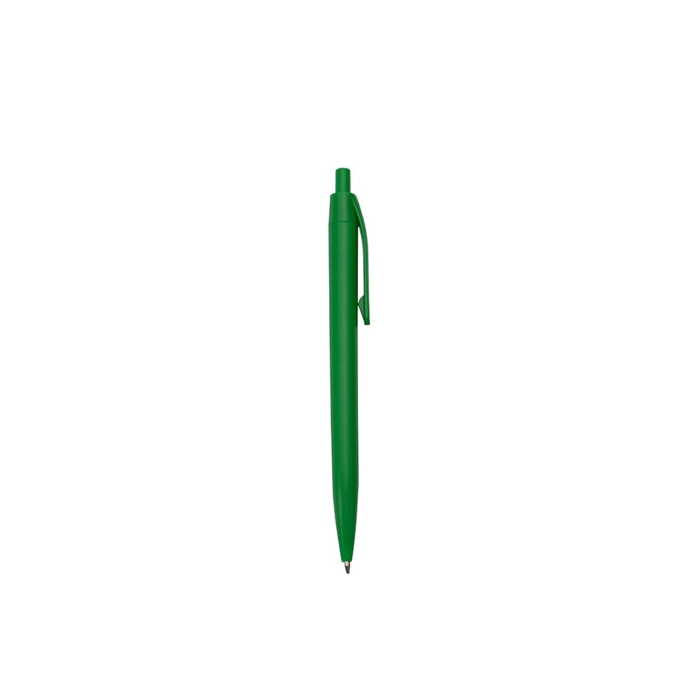 Caneta feita inteiramente em plástico. Conta com acionamento em por clique e carga esferográfica azul de 1.0mm.