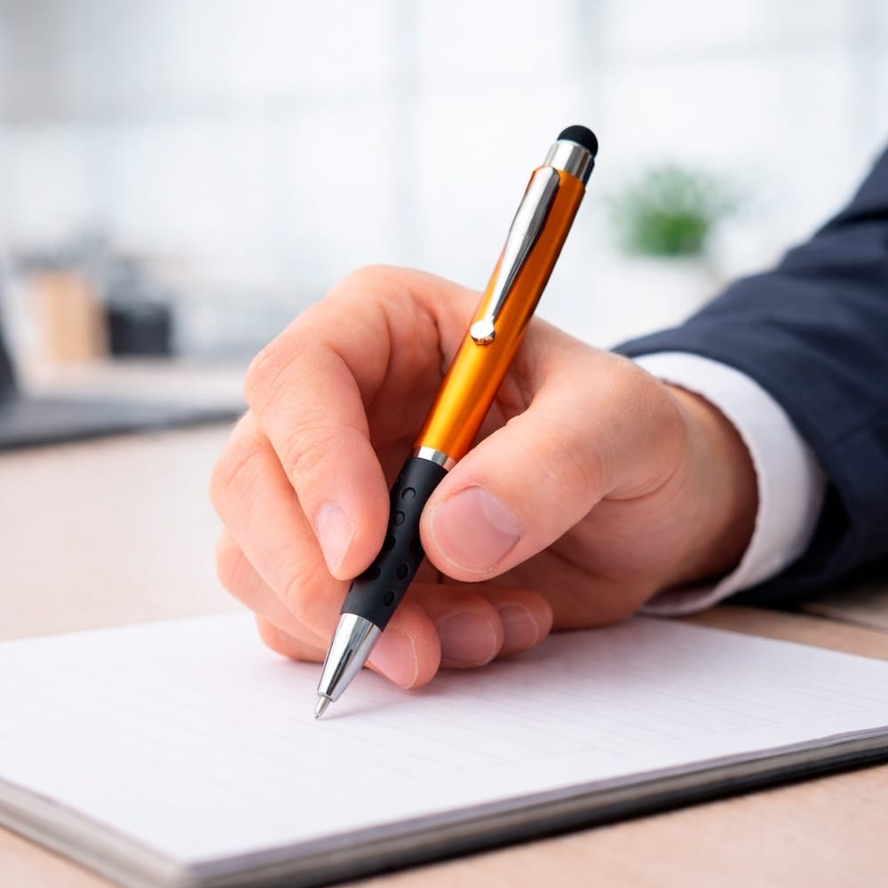 Transforme interações digitais em uma extensão da sua marca com uma ferramenta que une escrita tradicional e funcionalidade moderna. Ideal para empresas que buscam um brinde corporativo útil para o dia a dia do trabalho, oferecendo versatilidade para anotações e uso em dispositivos. Com personalização em área de 0,8 x 6 cm e a orientação consultiva da White Brindes, você oferece um item que será usado constantemente.