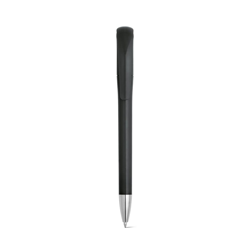 Caneta em ABS com acabamento brilhante. Ponteira cromada e clipe de grande dimensão. Escrita em azul até 1,5 km. Produto certificado de acordo com a portaria Inmetro nº423 de 8/out/2021
