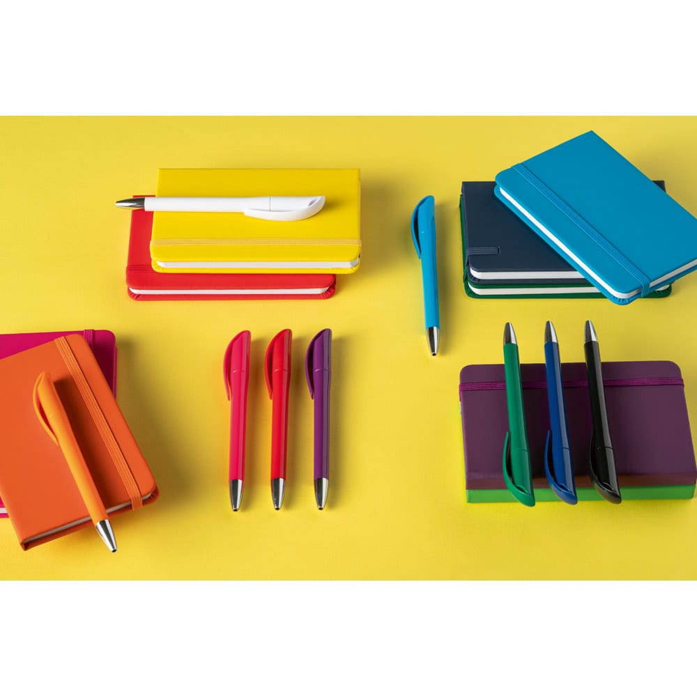- Visibilidade constante: Sendo um item de uso diário, sua marca ganha exposição repetida em reuniões, anotações e assinaturas.