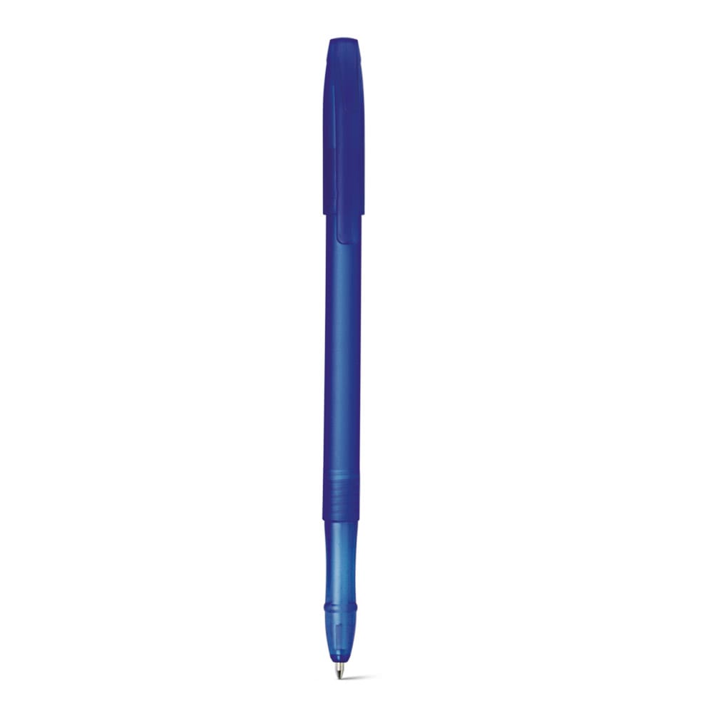 Caneta em PP e acabamento frost. Escrita em azul até 1,5 km. Produto certificado de acordo com a portaria Inmetro nº423 de 8/out/2021
