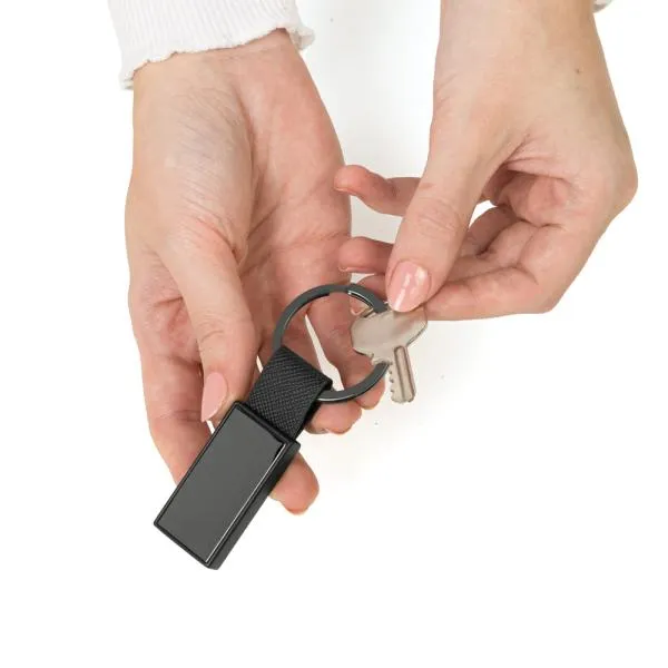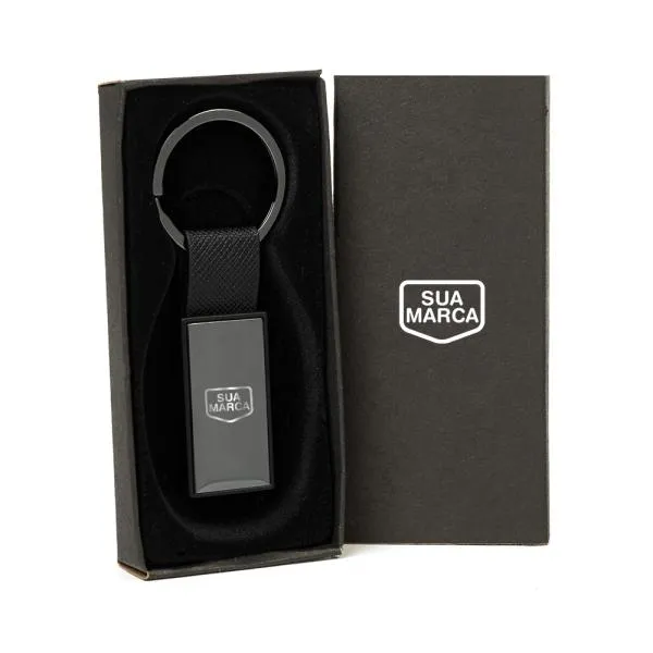Chaveiros personalizados são brindes funcionais que mantêm a marca presente no dia a dia de quem os recebe. Este modelo em metal cor ônix com acabamento em PU une aparência cuidadosa e utilidade prática, tornando-o uma escolha adequada para ações corporativas que buscam presença constante e valor percebido. Com gravação a laser em um lado e embalagem caixa preta inclusa, chega pronto para presentear — sem necessidade de embalagem adicional.
