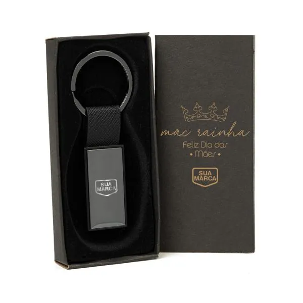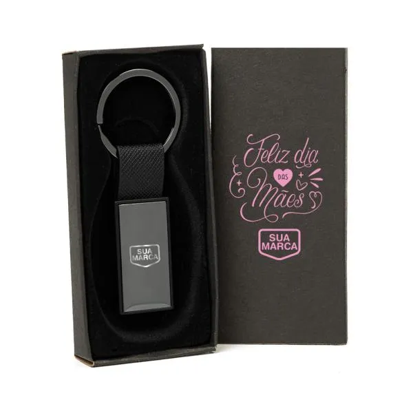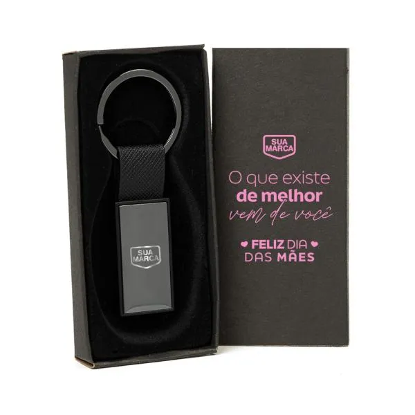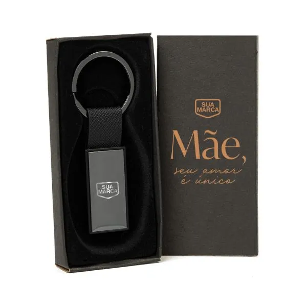 Chaveiro Em Metal/PU Cinza/Preto – Dia das Mães