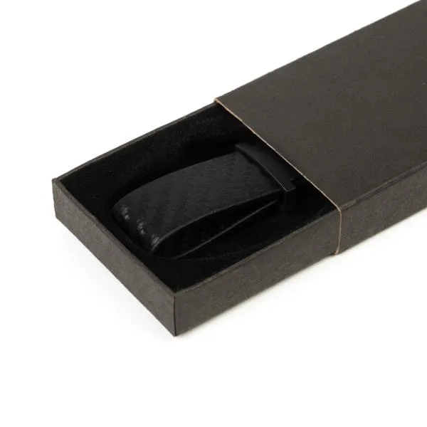 - Gravação na embalagem: Uma gravação em silk ou digital na caixa preta