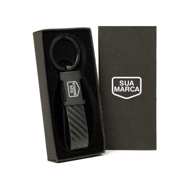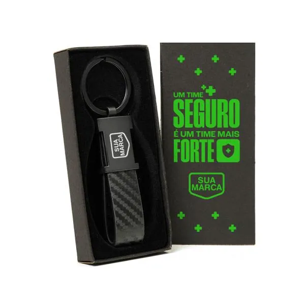 - Dupla personalização: Gravação a laser no chaveiro e gravação silk ou digital na embalagem — dois pontos de contato com a sua identidade visual