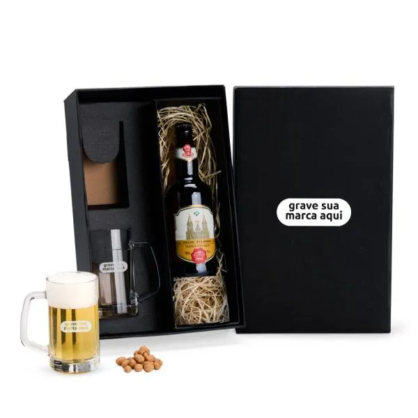 - Composição: 2 canecas americanas para cerveja/chopp + espaço para garrafa na embalagem