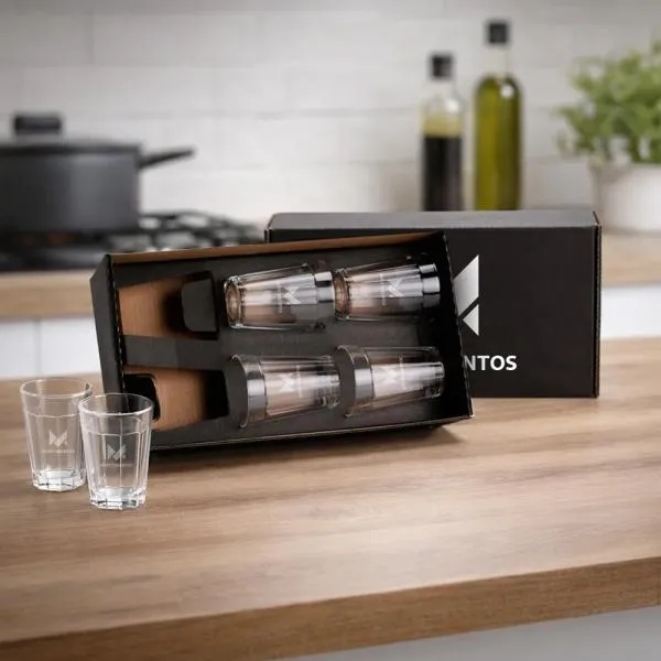 Conjunto de seis copos americanos em vidro com gravação a laser individual transforma um brinde funcional em um presente corporativo com identidade visual marcante. Indicado para empresas que buscam presentear colaboradores, clientes ou parceiros com algo útil no dia a dia, seja em home office, na cozinha ou em momentos de confraternização. Com embalagem em caixa preta e personalização tanto nos copos quanto na tampa da caixa, o conjunto chega pronto para impressionar desde o primeiro momento.