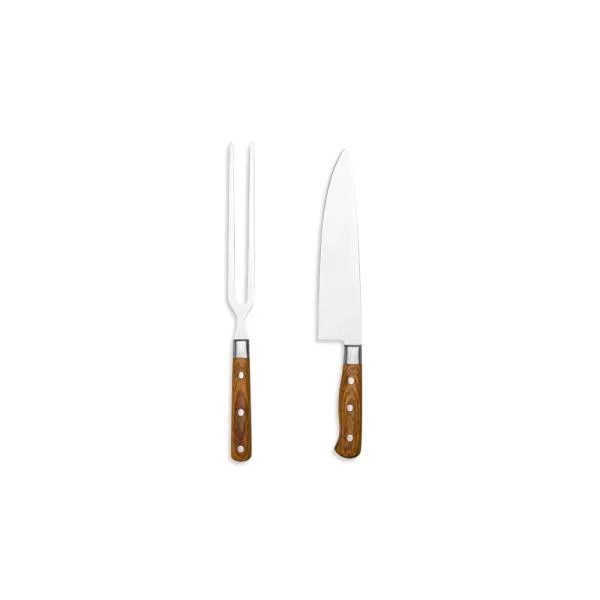 - Composição: Faca e garfo em madeira e inox, 2 peças