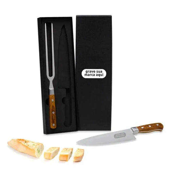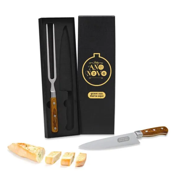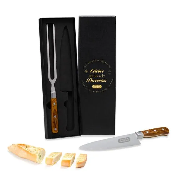 Kit de faca e garfo premium em Madeira/Inox.