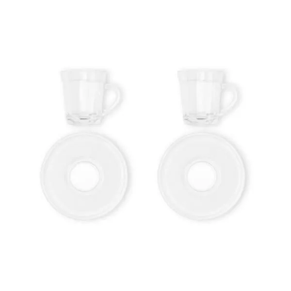 Kit de duas xícaras americano com pires em vidro.