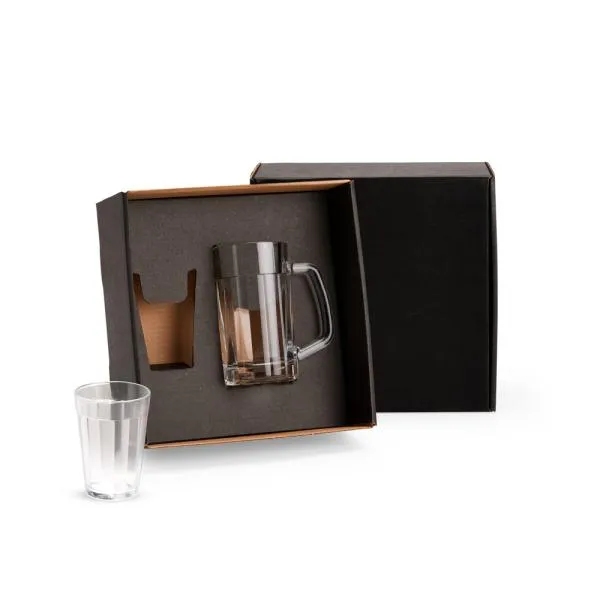 - Composição: 1 caneca americana para cerveja em vidro + 1 copo americano multiuso em vidro