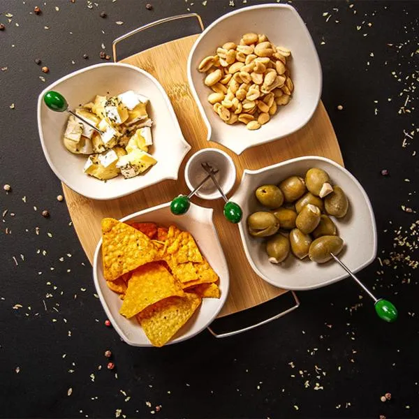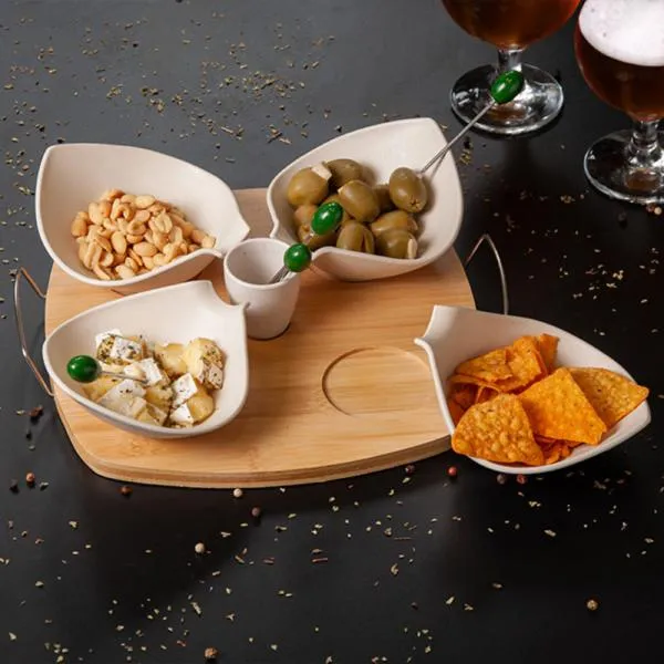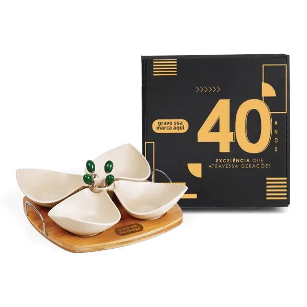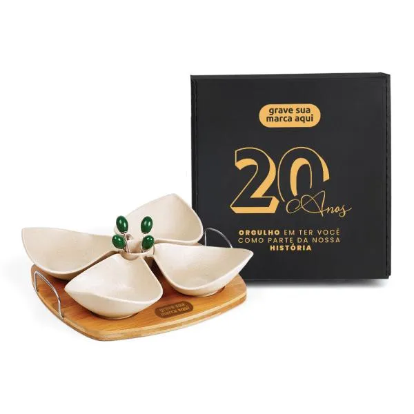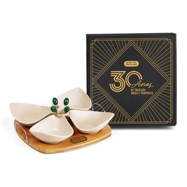 Kit para petisco em bambu e fibra de bambu que transforma momentos de confraternização em oportunidades de fortalecer o vínculo com sua marca. Ideal para empresas que buscam um brinde diferenciado para aniversário corporativo, reconhecimento de equipes ou presenteio de clientes e parceiros. Com gravação a laser na base e apresentação em caixa preta, o conjunto chega pronto para causar uma boa impressão — e a White Brindes garante que você verá o layout antes de aprovar qualquer produção.