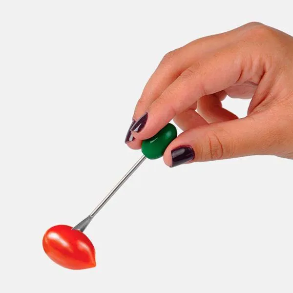 Kit para petisco em Bambu/Fibra de bambu. Acompanha cinco potes em fibra de bambu; Quatro garfos em aço Inox com ponta em formato de azeitona e base em bambu com alças em aço Inoxidável.