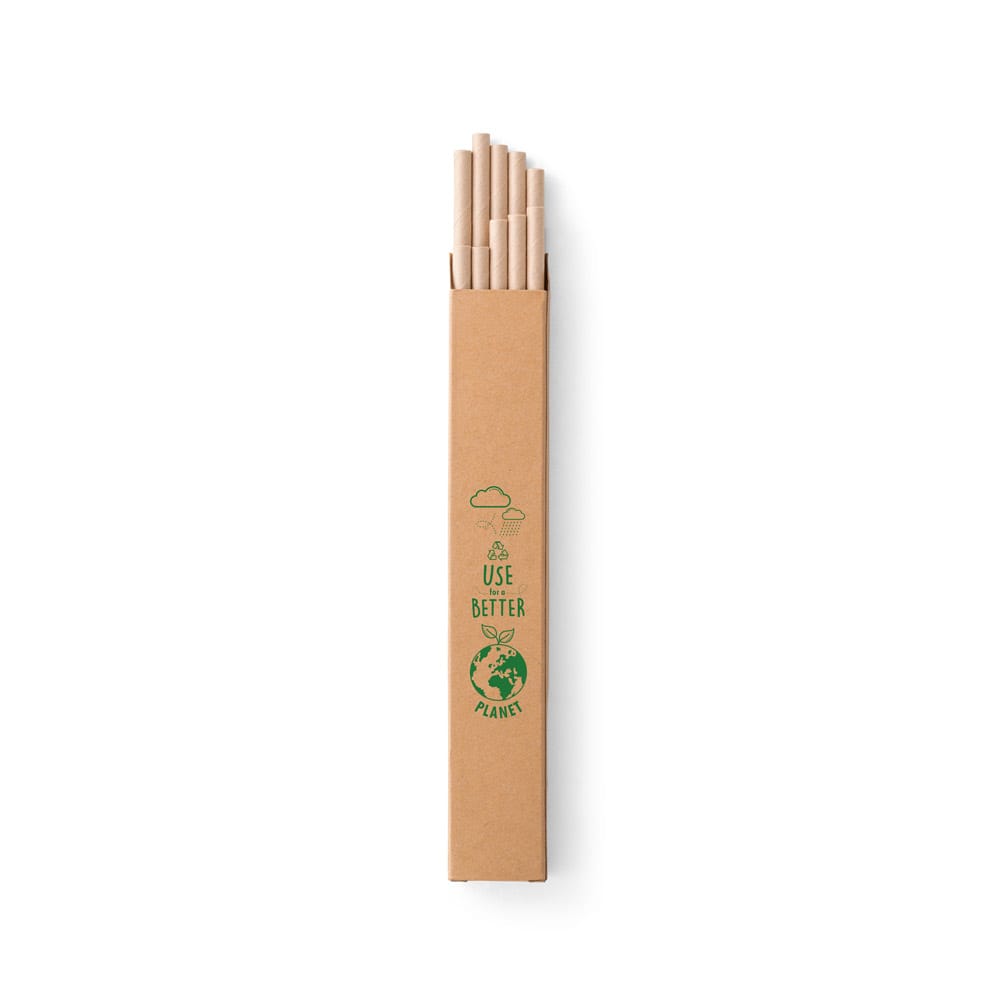 Conjunto de 10 canudos de uso único em papel kraft. Fornecidos em caixa presente de papel kraft
