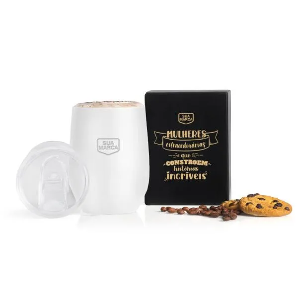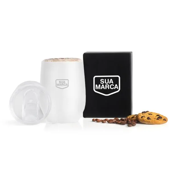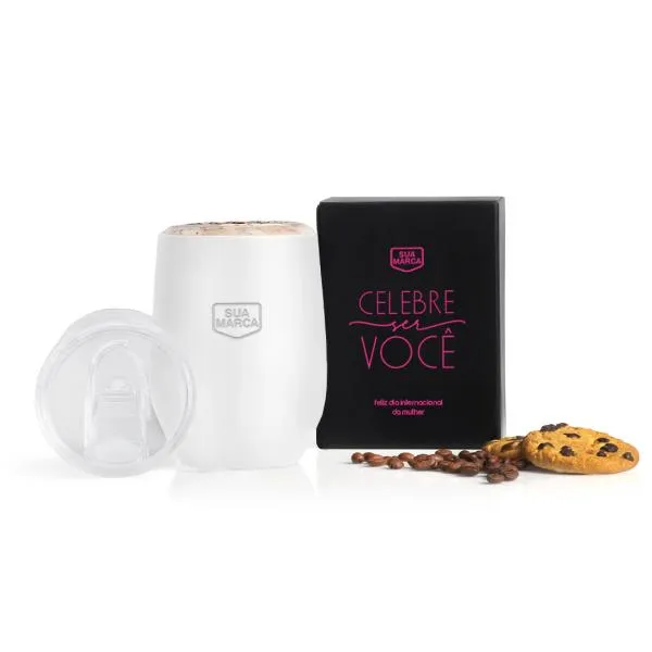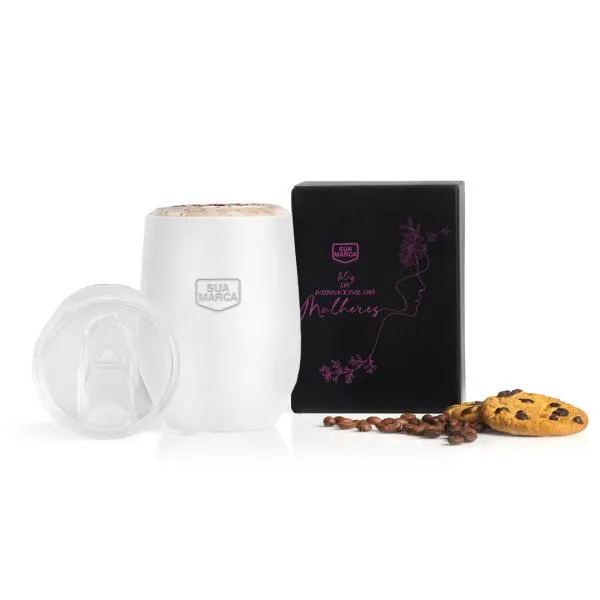 - Presença diária: Um copo térmico de uso frequente mantém a marca da sua empresa visível na rotina de quem o recebe, sem qualquer esforço adicional de comunicação
