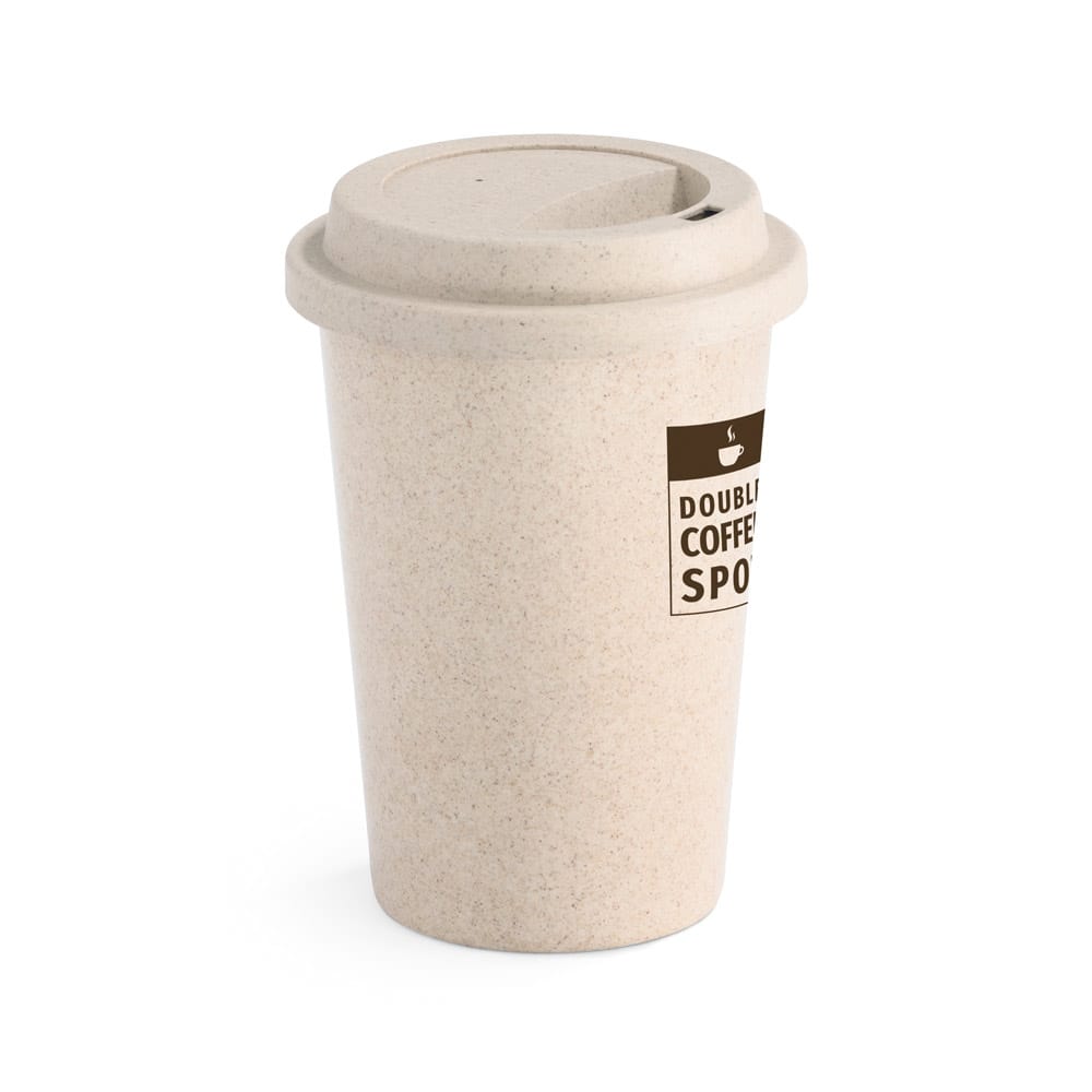 Copo de viagem em fibra de bambu (60%) e PP (40%) com tampa e capacidade até 450ml. Certificação EU Food Grade