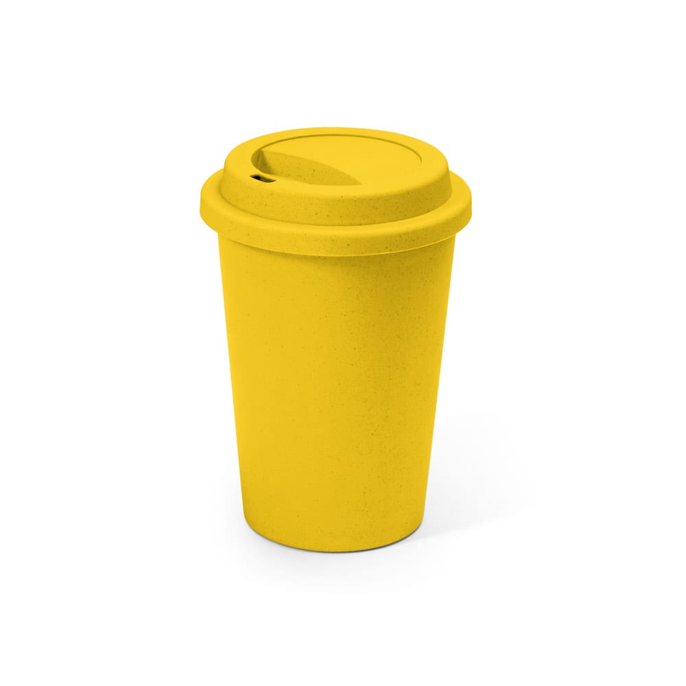 Copo de viagem em fibra de bambu (60%) e PP (40%) com tampa e capacidade até 450ml. Certificação EU Food Grade