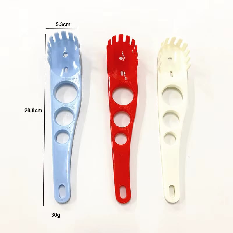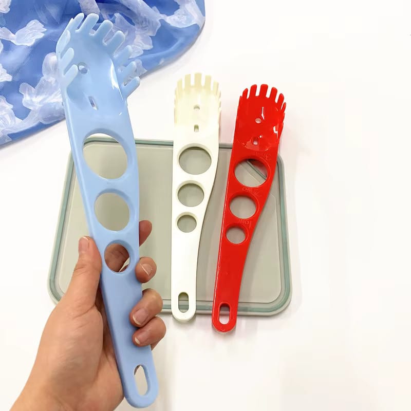 - Função: Colher para servir massas com medidor de porções integrado na base