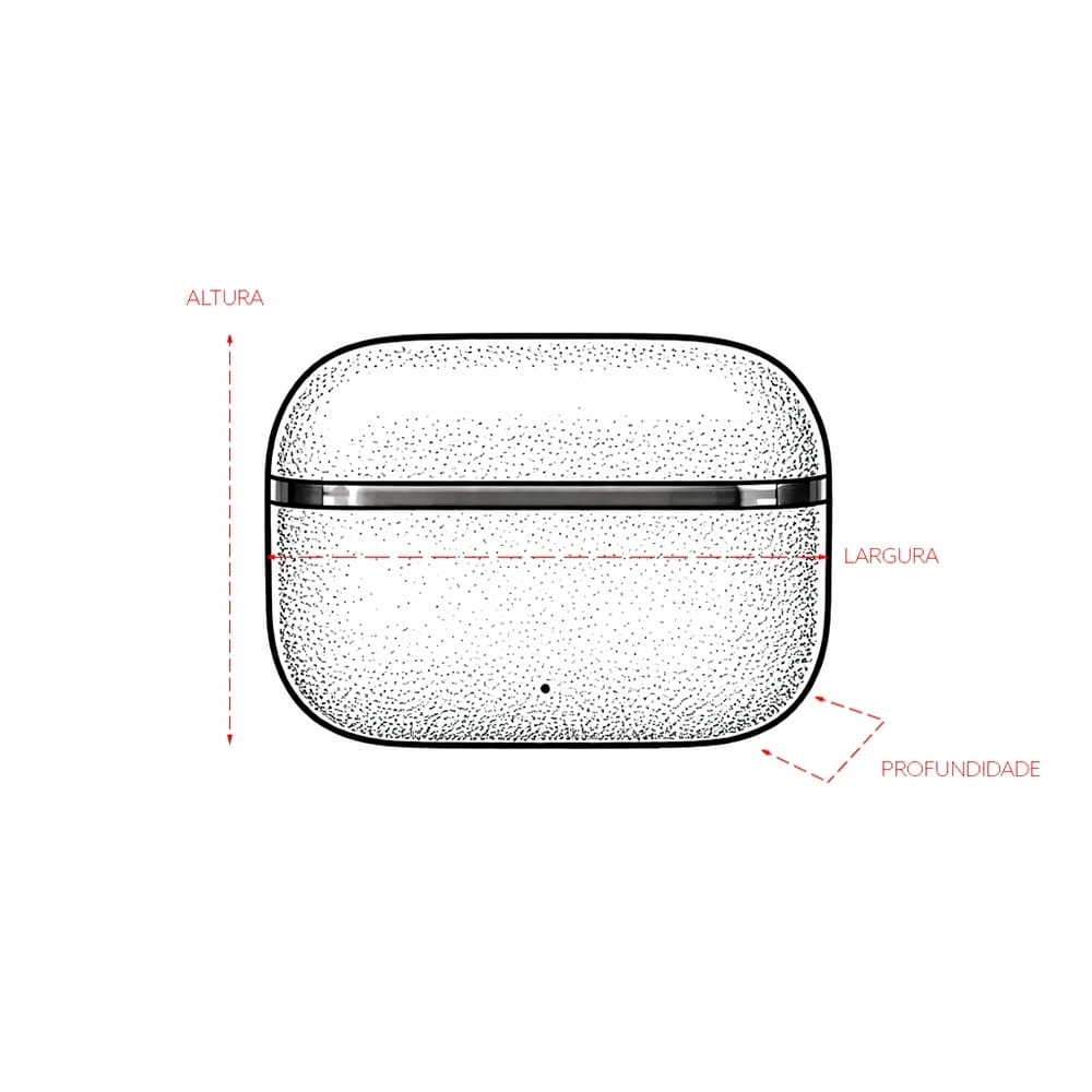 - Estojo: Case de carregamento em plástico texturizado com entrada USB-C