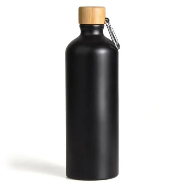Garrafa em alumínio na cor preta com capacidade de 1 litro.